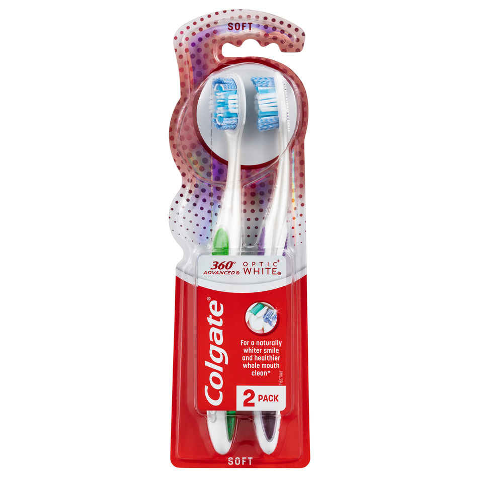 Colgate 360 Optic White Platinum with 2 whitening actions Toothbrush Soft Value 2-Pack
