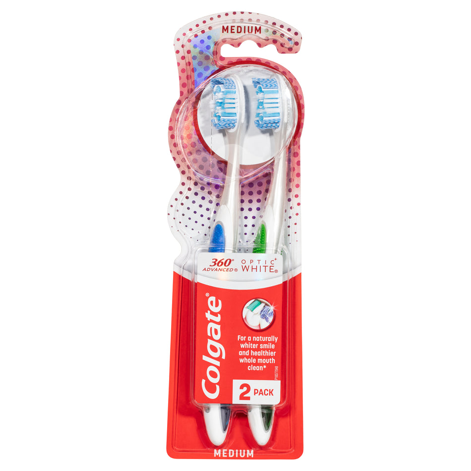 Colgate 360 Optic White Platinum with 2 whitening actions Toothbrush Medium Value 2-Pack