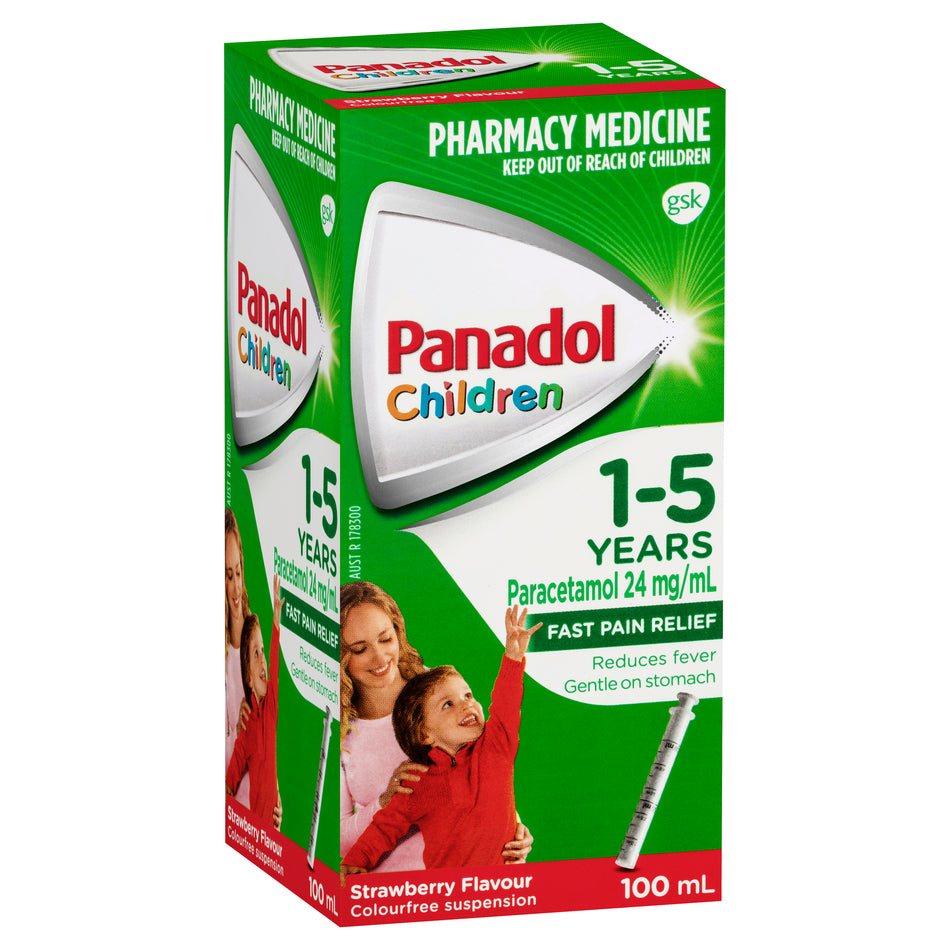 Panadol Children 1-5 Years Suspension, Fever & Pain Relief, Strawberry Flavour 100 mL
