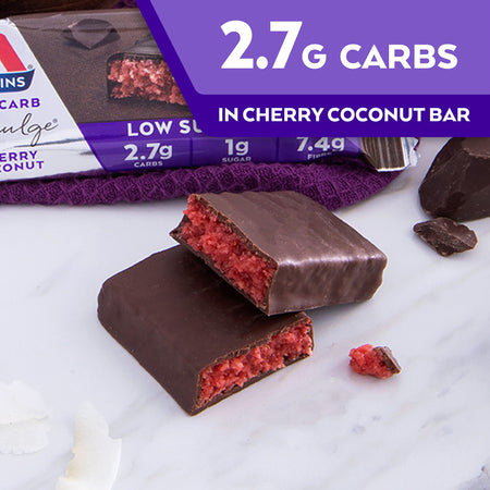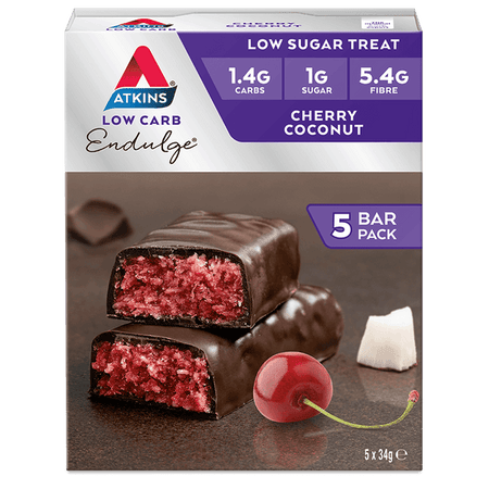 Treat yourself to Atkins Endulge Cherry Coconut bars. Each bar contains no more than 4g of net carbs, and is packed with a blend of chocolate chips, sweetness and coconut. Enjoy the delicious combination of cherries and coconut without sacrificing your low-carb lifestyle.