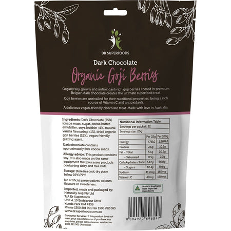 DR SUPERFOODS Goji Berries Organic - Dark Chocolate 300g