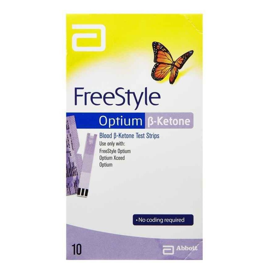 FreeStyle Optium blood β-Ketone test strips are available for the self-testing of blood ketones. The ketone testing strips can be used with the FreeStyle Optium Neo, FreeStyle Optium, Optium Xceed, and Optium meters.