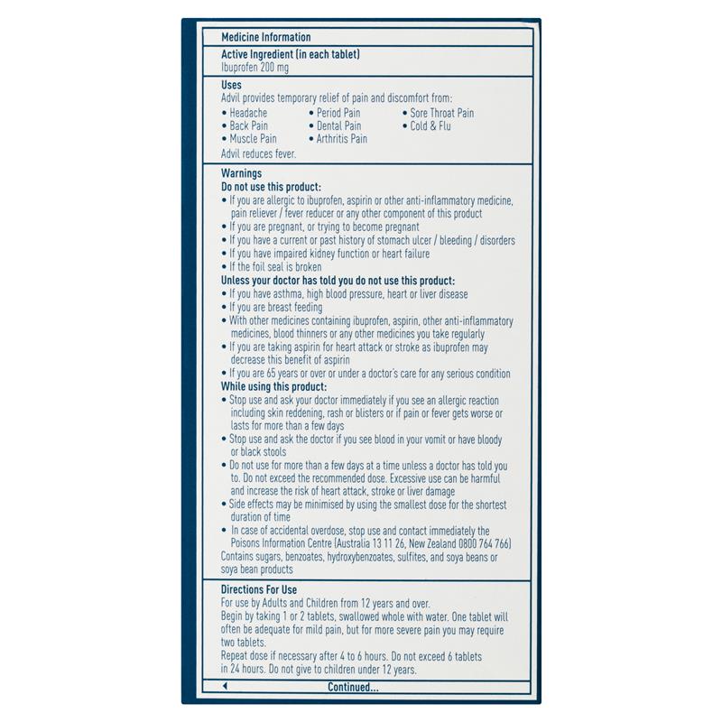 Advil Tablets relieves pain fast.