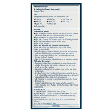 For use by Adults and Children from 12 years and over. Begin by taking 1 or 2 capsules, swallowed whole with water. One capsule will often be adequate for mild pain, but for more severe pain you may require two capsules. Repeat dose if necessary after 4 to 6 hours. Do not exceed 6 capsules in 24 hours. Do not give to children under 12 years.