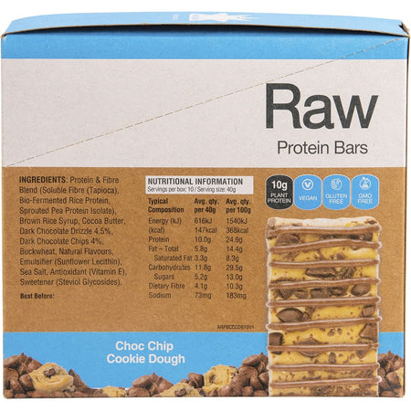 Amazonia Raw Protein Bar Choc Chip Cookie Dough 10x40g