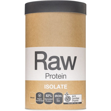 Amazonia Raw protein isolate Raw protein isolate is the first-to-market organic, raw, prebiotic, dairy-free protein with premium bioavailability. A gentle formula designed with optimum gut health in mind, enhanced with live digestive enzymes and prebiotics (food for good digestive bacteria) to support digestive balance, which assists with the breakdown and assimilation of protein for ultimate absorption. This unique protein contains almost80% organic sprouted bio-fermented protein. A blend of 70% golden pea and 30% brown rice has been specifically formulated to providing an optimal complete amino-acid complex.