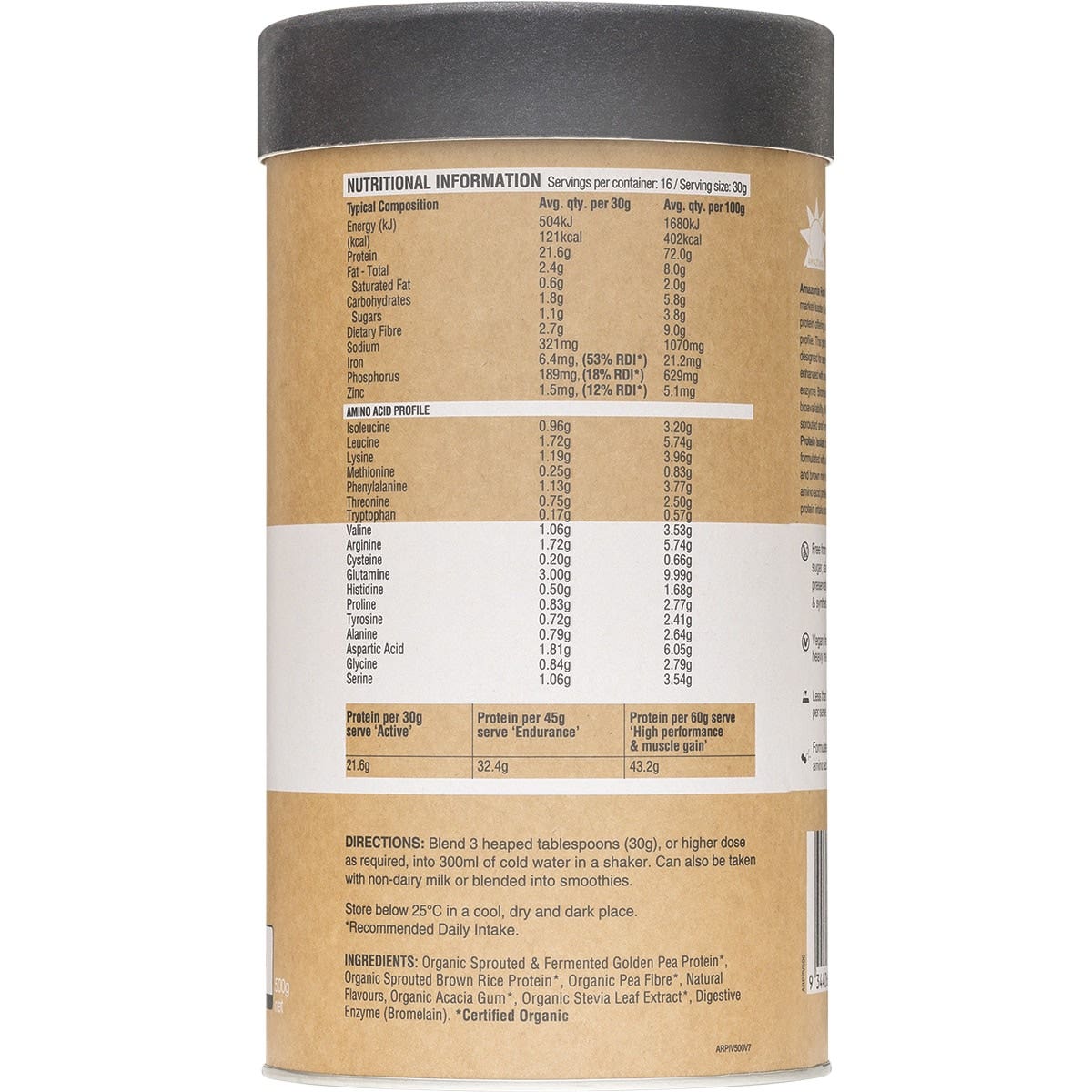 Amazonia Raw protein isolate Raw protein isolate is the first-to-market organic, raw, prebiotic, dairy-free protein with premium bioavailability. A gentle formula designed with optimum gut health in mind, enhanced with live digestive enzymes and prebiotics (food for good digestive bacteria) to support digestive balance, which assists with the breakdown and assimilation of protein for ultimate absorption. This unique protein contains almost80% organic sprouted bio-fermented protein. A blend of 70% golden pea and 30% brown rice has been specifically formulated to providing an optimal complete amino-acid complex.