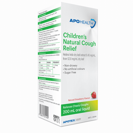 APOHEALTH Children’s Natural Cough Relief helps thin, loosen, and expel mucus from the airways, resulting in reduced coughing.