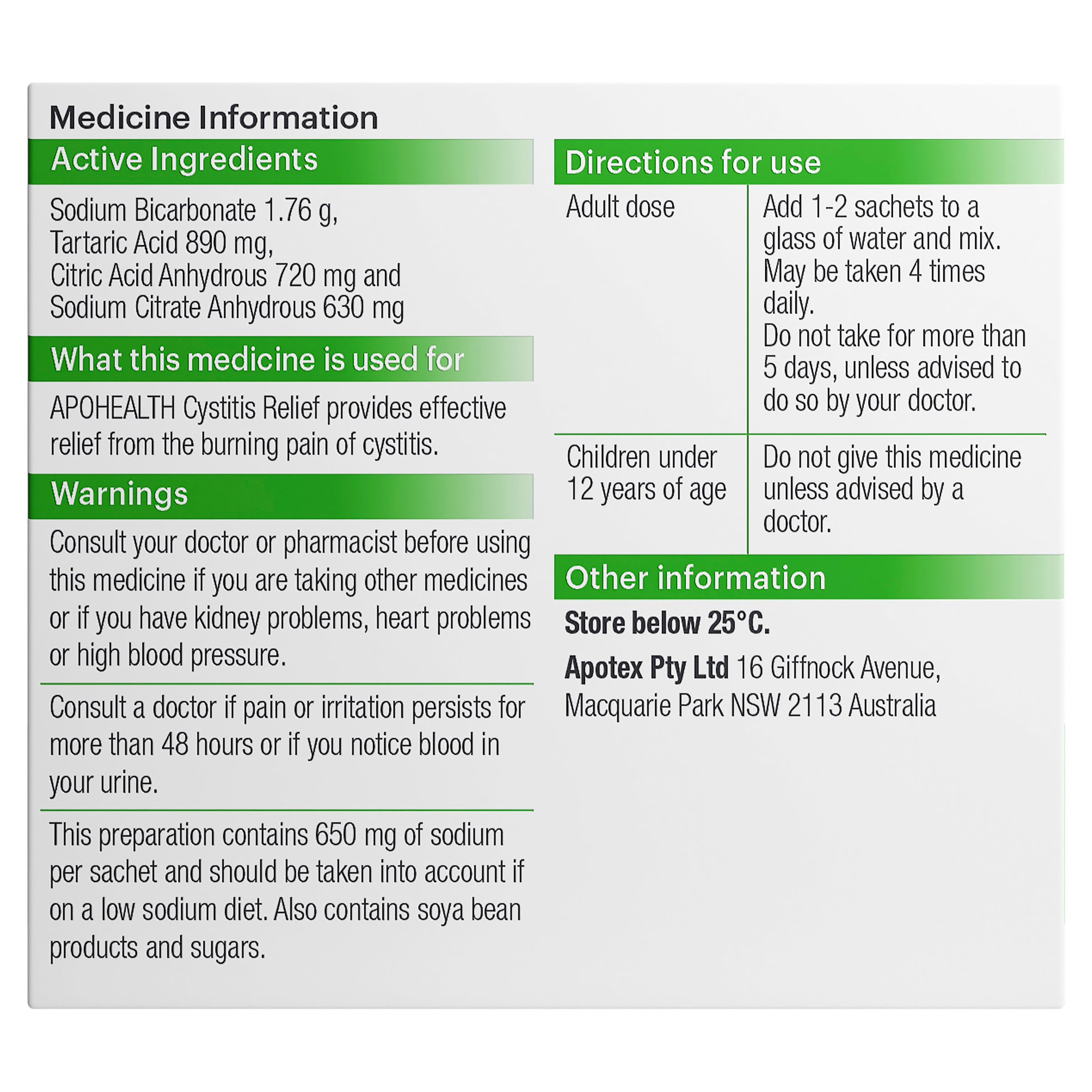 APOHEALTH Cystitis Relief is a urinary alkaliniser for effective relief from the burning pain of cystitis.