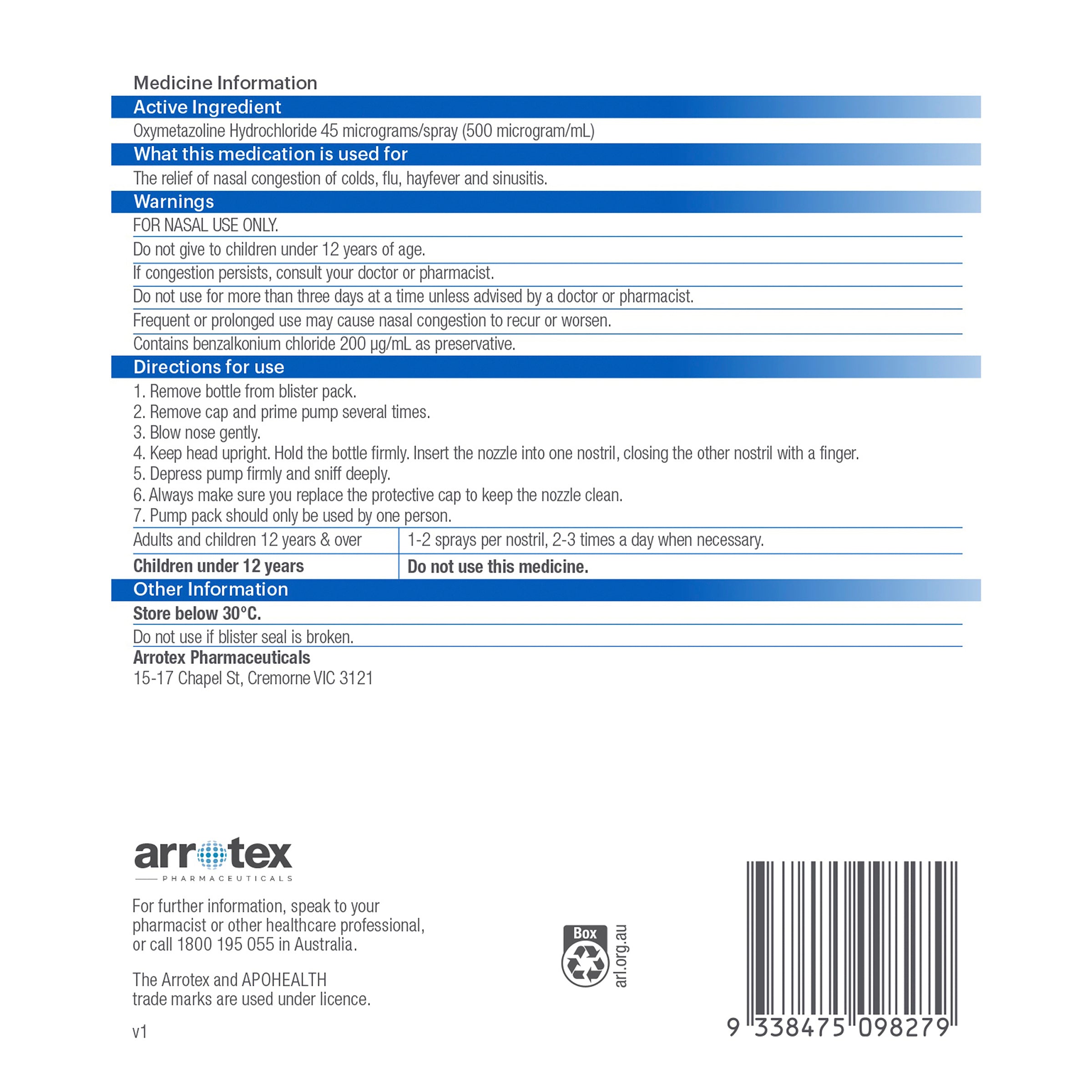 APOHEALTH Decongestant Nasal Spray provides relief of the nasal congestion of colds, flu, hayfever and sinusitis.
