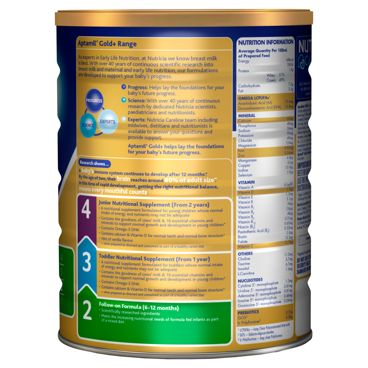Aptamil Gold+ Follow-On Formula is based on cow's milk protein.