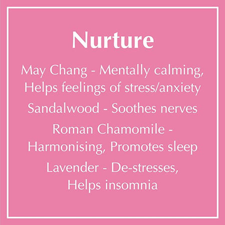 Nurture’s blend of essential oils works in perfect harmony to promote physical relaxation and mental calm. This rich and fruity aroma brings together the fresh top note of calming May Chang and the sweet, fresh scent of harmonizing Roman Chamomile with the aromatic delicately woody base note of soothing Sandalwood, helping to release you from the stresses of the day and encouraging you to discover your inner calm.