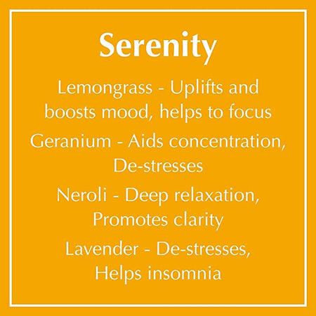 Serenity’s blends of oils work in unison to free your mind from the stresses of the day, before uplifting your spirits to provide a wonderfully balancing experience. This warm, comforting aroma blends the beautifully warm citrus top notes of Lemongrass with the underlying exotic, floral fragrance of Neroli and soft, sweet Geranium, to uplift and energize your mind and body, and soothe away stress, leaving you feeling revived and restored.