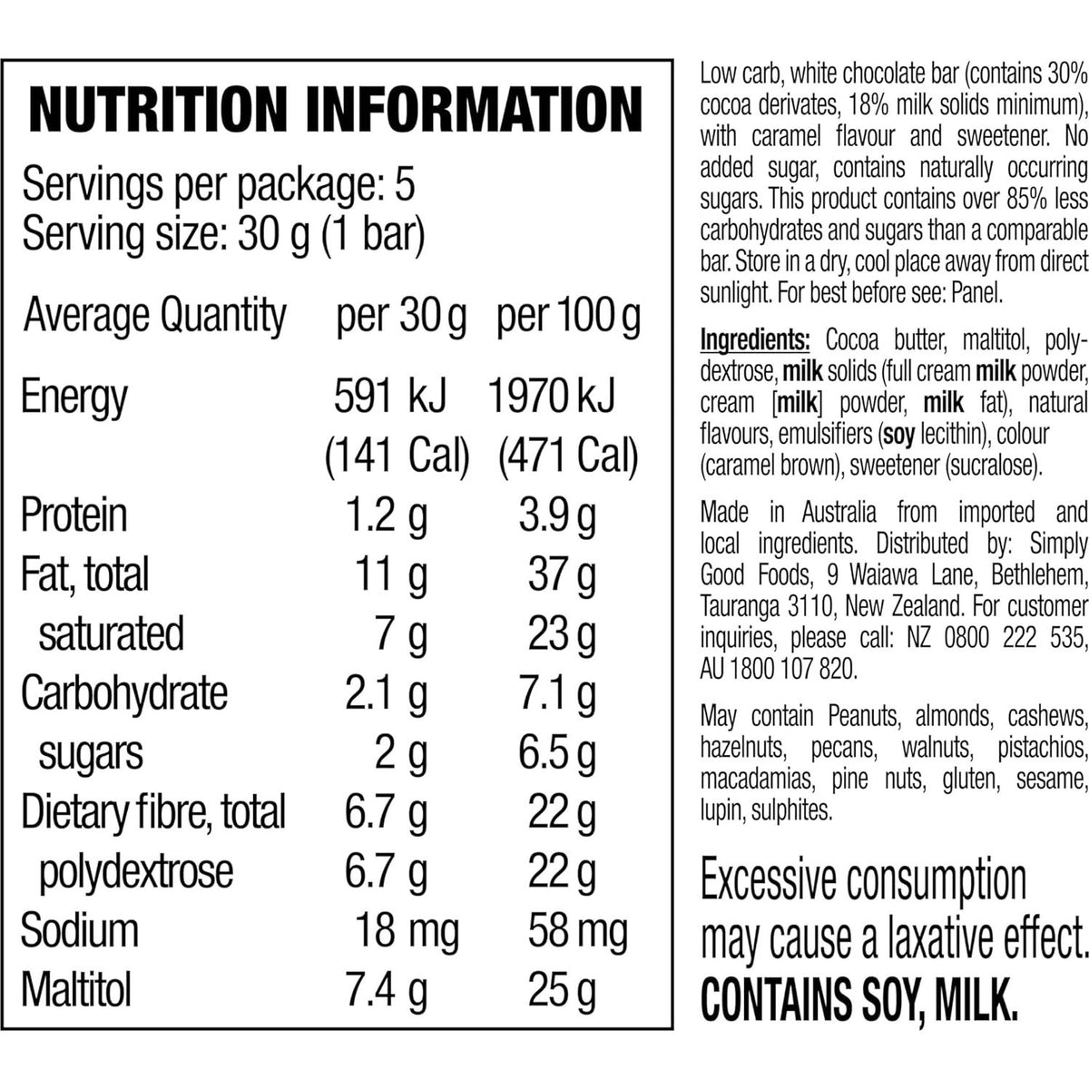 Atkins Endulge Caramelised White Chocolate Low Carb Bar 5 Pack provides delicious indulgence without the guilt. Each bar contains only 4g of net carbs per serving, creating a snack you can enjoy without breaking your low carb diet. Satisfy your sweet tooth the healthy way!