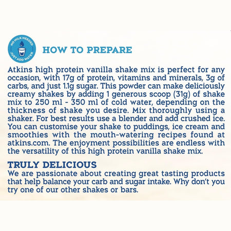 Atkins Powdered Shake Mix Vanilla 310g