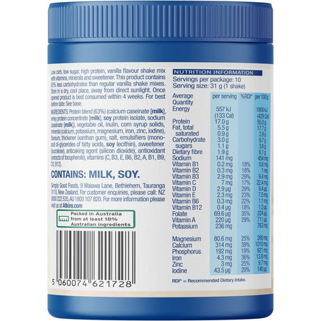 Atkins Powdered Shake Mix Vanilla 310g is the ideal solution for meal replacements and snacks. It is low in sugar and high in protein, with 20g per serving and 17 vitamins and minerals to keep you fueled throughout the day. Enjoy a delicious shake that is ready in less than a minute.
