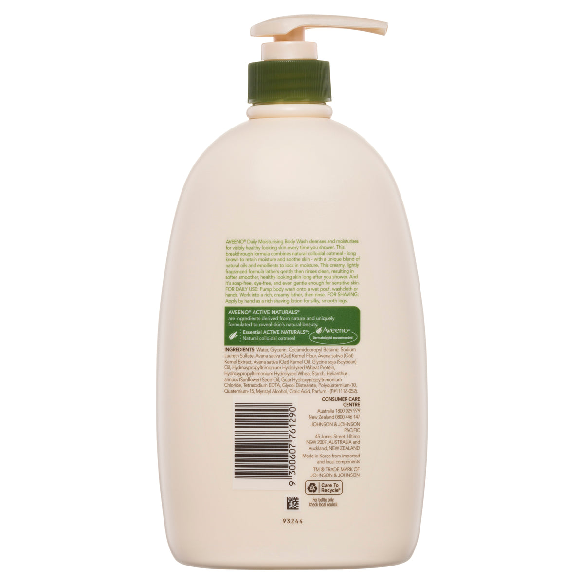 Aveeno® Daily Moisturising Body Wash cleanses and moisturises for visibly healthy looking skin every time you shower This breakthrough formula combines natural colloidal oatmeal - long known to retain moisture and soothe skin - with a unique blend of natural oils and emollients to lock in moisture. This creamy, lightly fragranced formula lathers gently then rinses clean. resulting in softer, smoother, healthy looking skin long after you shower. And its soap-free, dye-free, and even gentle enough for sensitive skin.Aveeno® Active Naturals® are ingredients derived from nature and uniquely formulated to reveal skin's natural beauty.