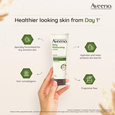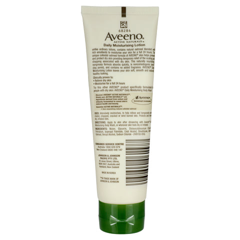 Aveeno active naturals daily moisturising lotion, unlike ordinary body lotions, contains natural oatmeal blended with rich emollients to moisturise your skin for a full 24 hours. The unique oatmeal formula of Aveeno also helps prevent and protect dry skin providing temporary relief of the scaling and chapping associated with dry skin.This naturally hydrating, non greasy moisturiser formula is: