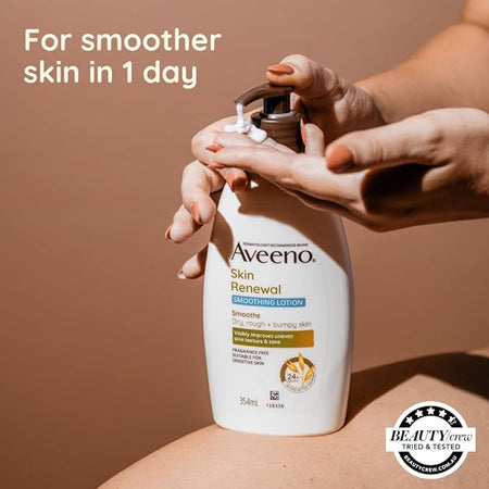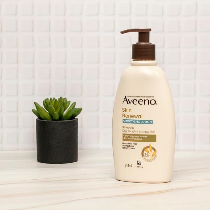 AVEENO® Skin Renewal Smoothing Lotion is a non-greasy lotion that visibly improves uneven skin texture & tone for radiant, healthy-looking skin with 24-hour hydration.Gently exfoliates & resurfaces sensitive skin for consistently softer, smoother results in 1 week.