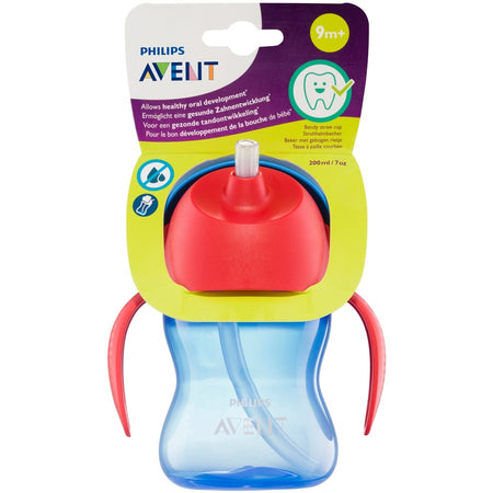 Philip Avent Bendy Straw Cup allows for healthy oral development. The Philips Avent Bendy straw cup with ergonomic handles is ideal for first sips from a straw and allows healthy oral development. Developed with experts to make it our best straw cup possible.