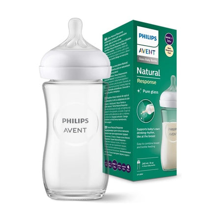 Philips Avent natural response glass bottle 240 ml adapts to the baby's natural feeding rhythm, making it easier to combine breastfeeding and bottle feeding. The teat has a single opening that only releases milk when the baby actively sucks, allowing babies to drink, swallow and breathe in their natural rhythm, just like at the breast.