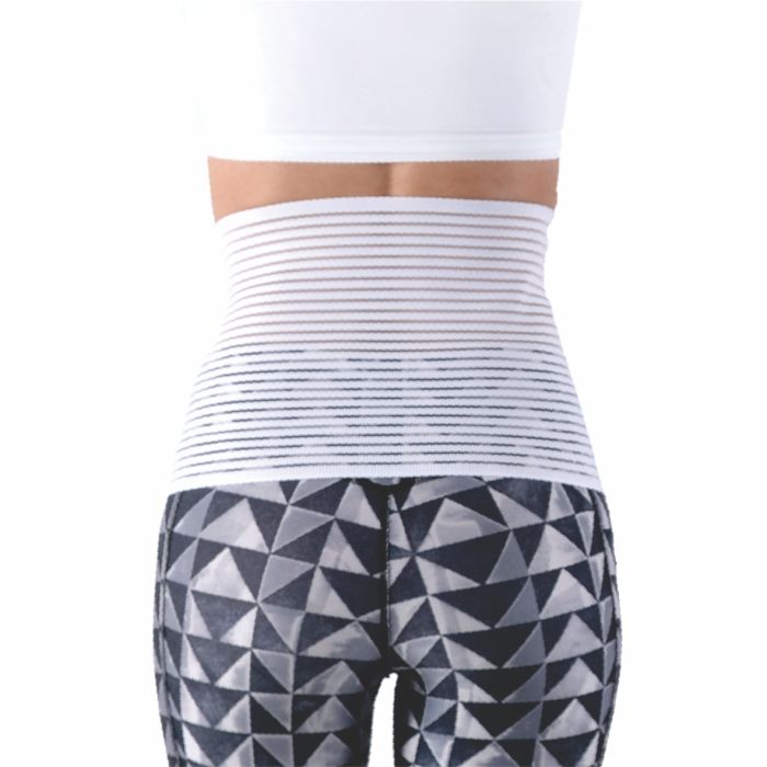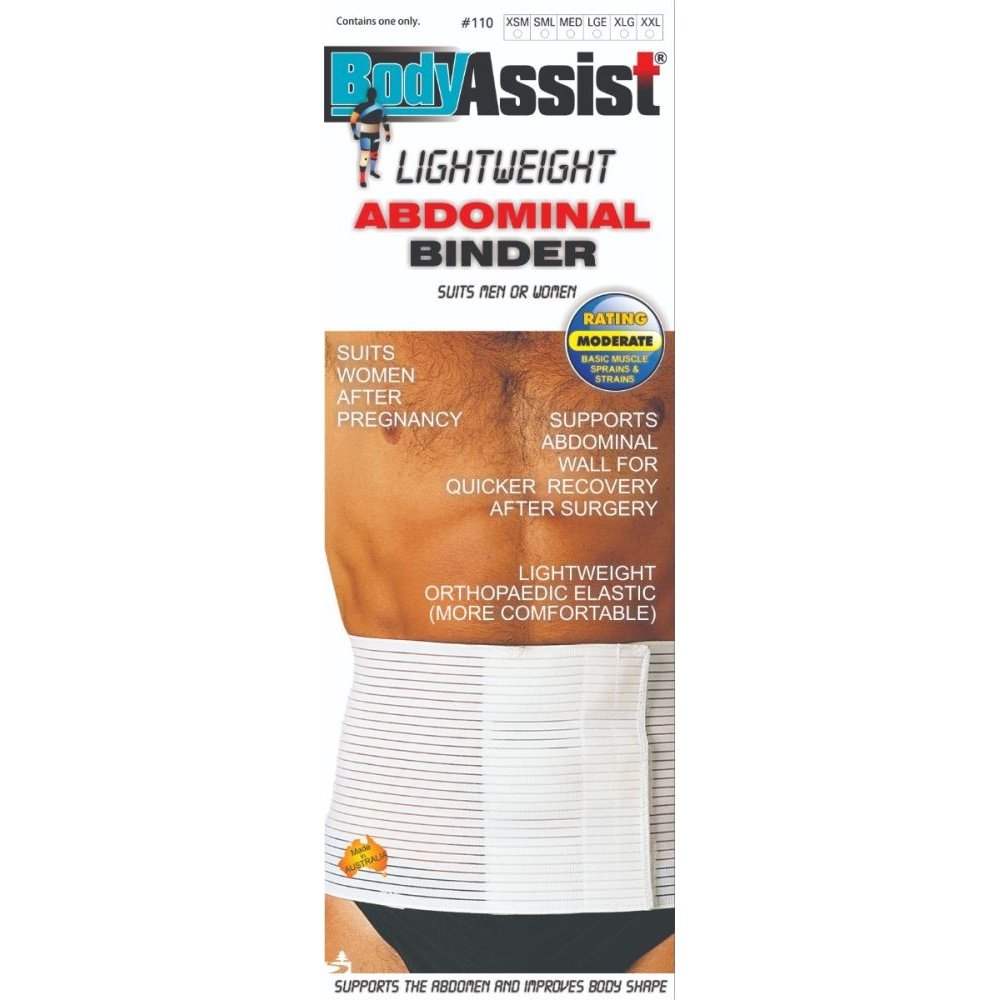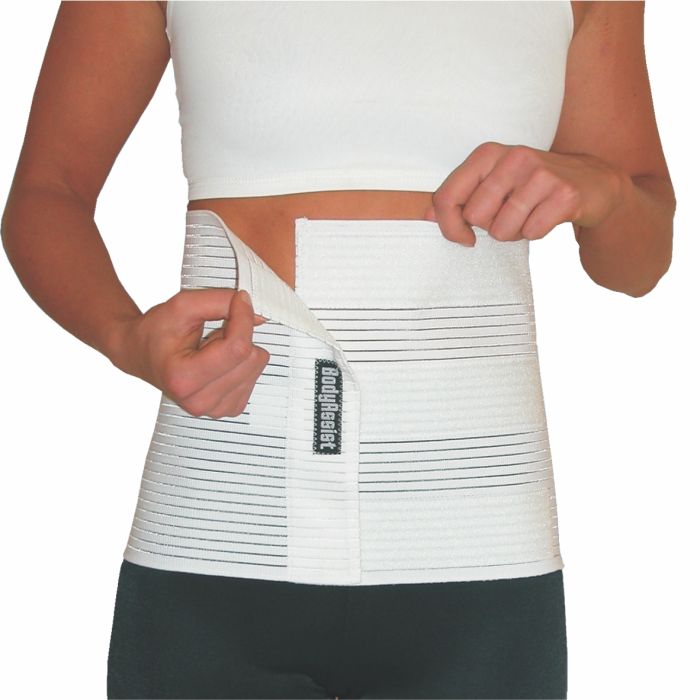 Lighweight, vented elastic abdominal binder.