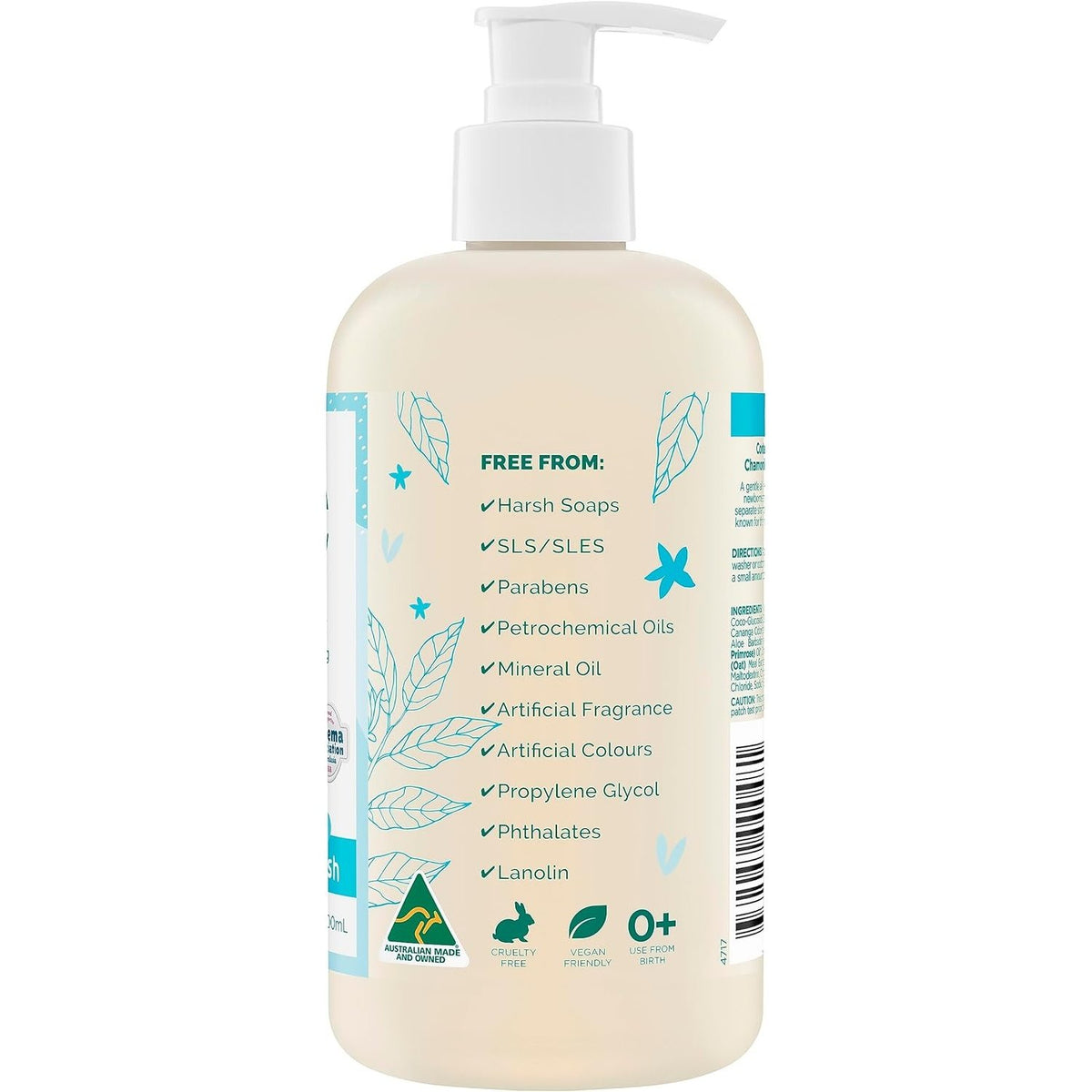 A gentle 'top to toe' 2-in-1 body cleanser and shampoo, ideal for newborns and little ones who don't have much hair. Enriched with organic Aloe Vera and organic Ylang Ylang, which are known for their skin soothing properties, as well as organic Evening Primrose Oil to moisturise and nourish baby's skin and scalp. Suitable to use from birth. Dermatologically tested and suitable for sensitive skin. Proud supporter of the Eczema Association of Australia.