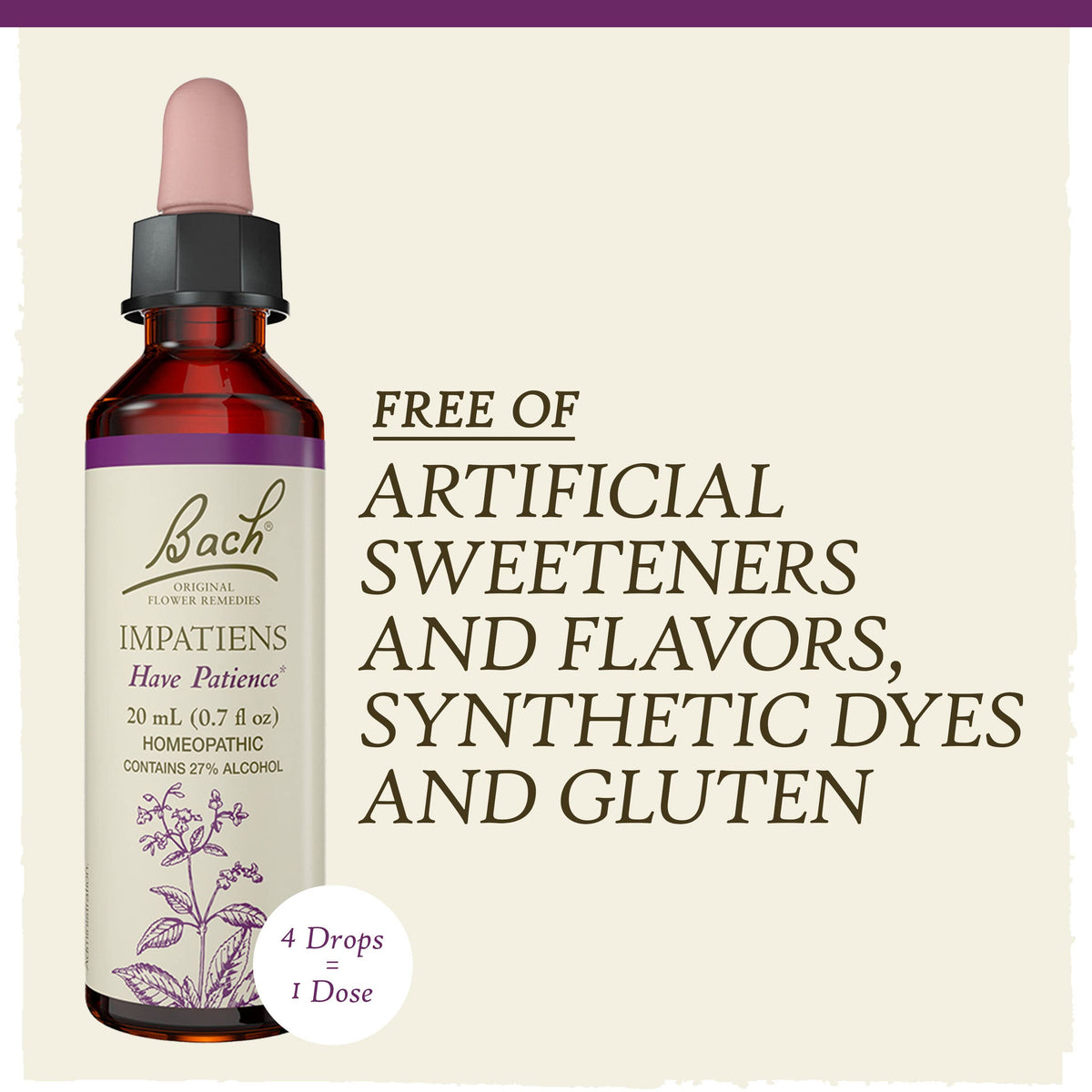 Have Patience. The Bach® remedy Impatiens may encourage the positive potential to think and act in less haste. We all become overly irritable, impatient, and nervous from time to time. Find ease in how you deal when life, people, and situations slow you down.