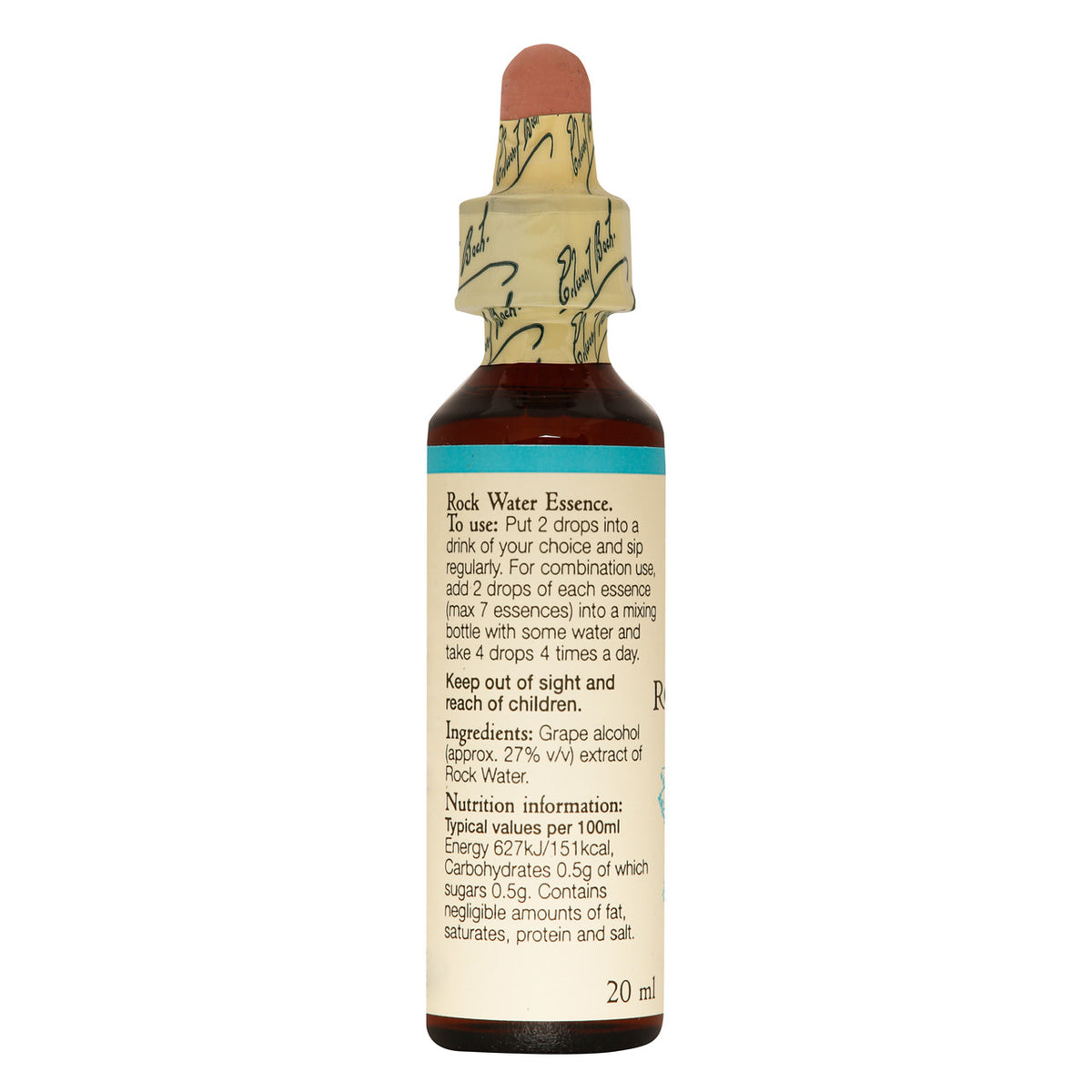 Flexible Mind. The Bach® remedy Rock Water may encourage the positive potential of a flexible attitude when striving for your goals. Stop tying yourself down to inflexible and overly high standards. Open up to new ways of thinking and living.