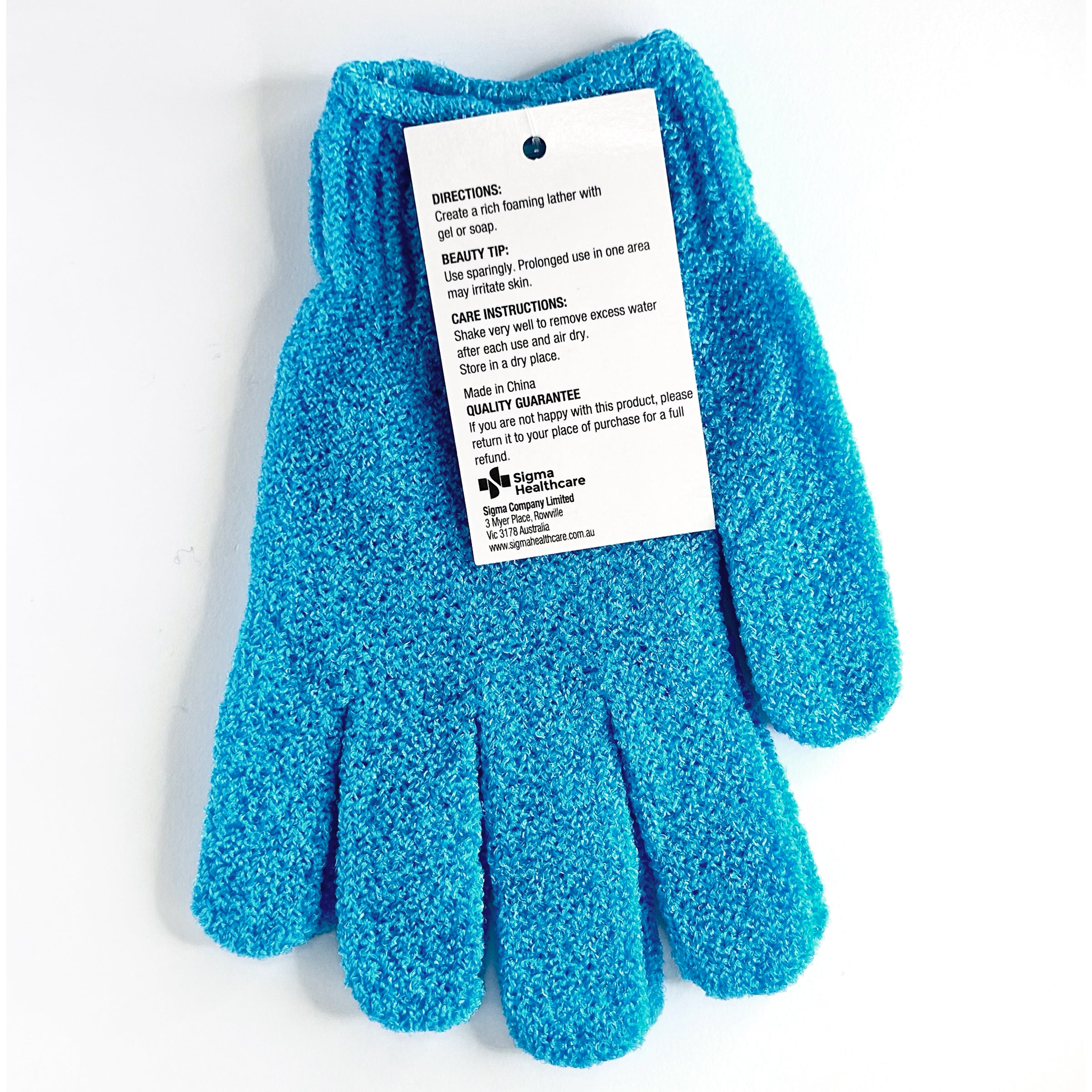 One size fits all Knitted nylon gloves help gently remove dead skin and stains.