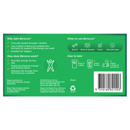 Berocca Performance contains high dose B vitamins, as well as vitamin C and minerals zinc, calcium and magnesium. It helps promote immune defence as well as energy levels.