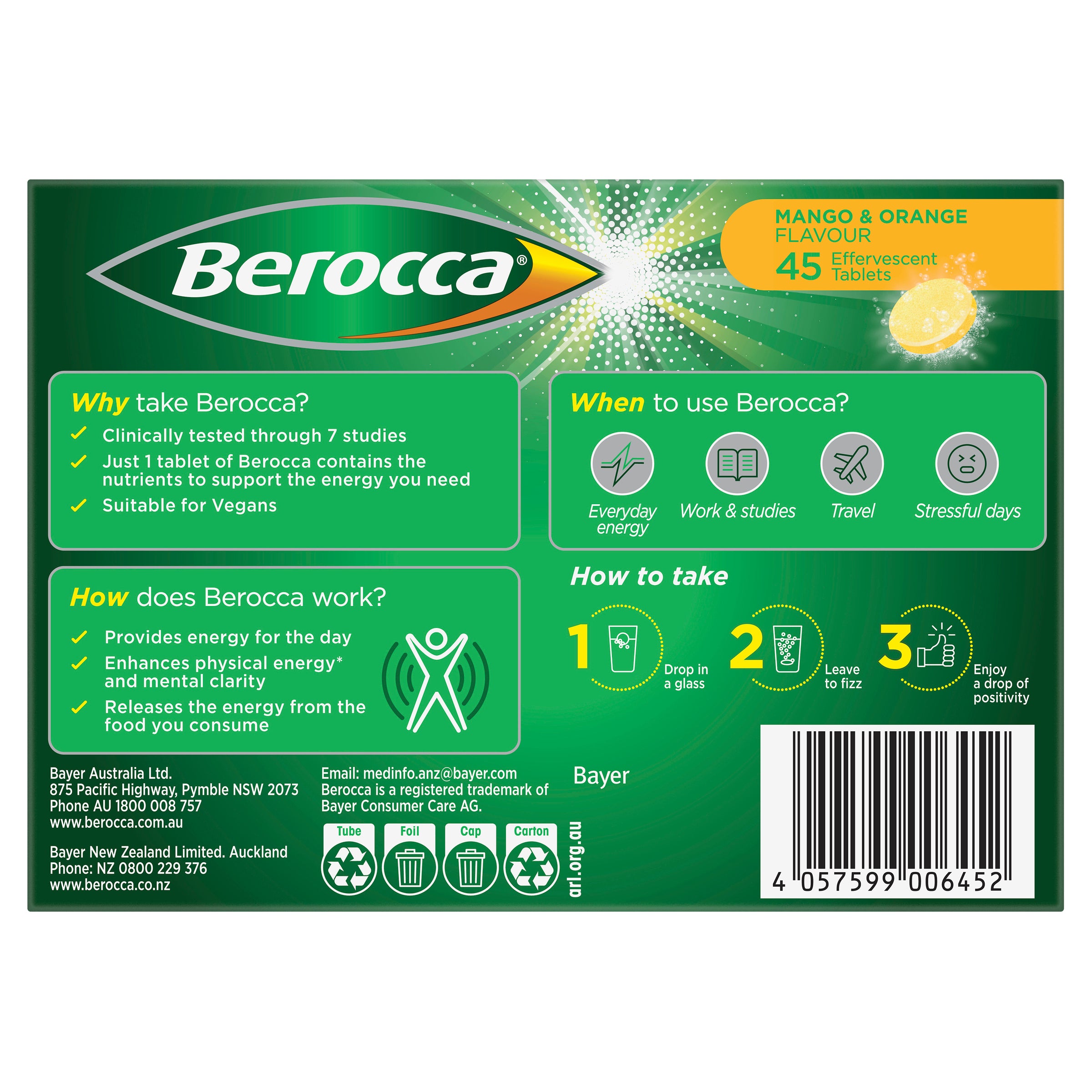 Berocca Performance contains high dose B vitamins, as well as vitamin C and minerals zinc, calcium and magnesium. It helps promote immune defence as well as energy levels.