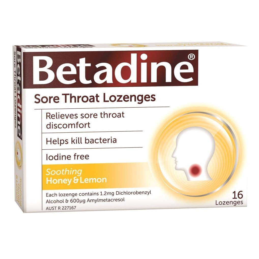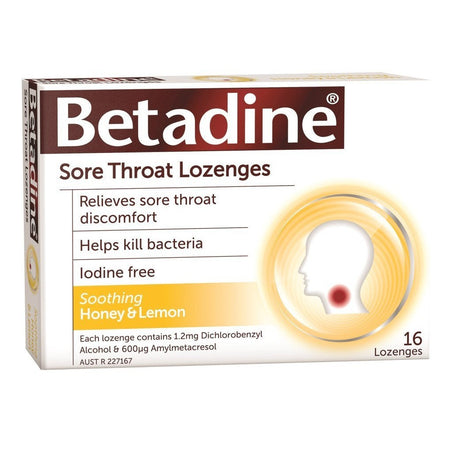 Betadine Sore Throat Lozenges Soothing Honey & Lemon Flavour 16 Pack