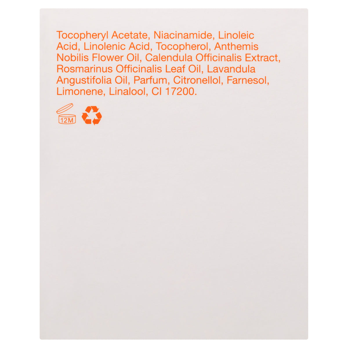 Paraffinum Liquidum, Lsopropyl Palmitate, Triisononanoin, Cetearyl Ethylhexanoate, Glycerin, Butyrospermu Parkii Butter, Aqua, lsopropyl Myristate, Urea, Caprylic/Capric, Triglyceride, lsostearyl lsostearate, C26-28 Alkyl Dimethicone, Sodium Lactate, Gluconolactone, Sodiuum, PCA, Sodium Hyaluronate, Octyldodacyl PCA, Sucrose Laurate, Sucrose Stearate, Lactic Acid, Lanolin, Butylene Glycol, Dimethicone/Vinyl, Dimethicone Crosspolymer, Bisabolol, Helianthus Annuus, Seed Oil, Silica, Glycine Soja Oil, BHT, Retinyl Palmitate, Tocopheryl Acetate, Niacinamide, Linoleic Acid, Linolenic Acid, Tocopherol, Anthemis Nobilis Flower Oil, Calendula Officinalis Extract, Rosmarinus Officinalis Leaf Oil, Lavandula Angustifolia Oil, Parfum, Citronellol, Farnesol, Limonene, Linalool, Cl 17200