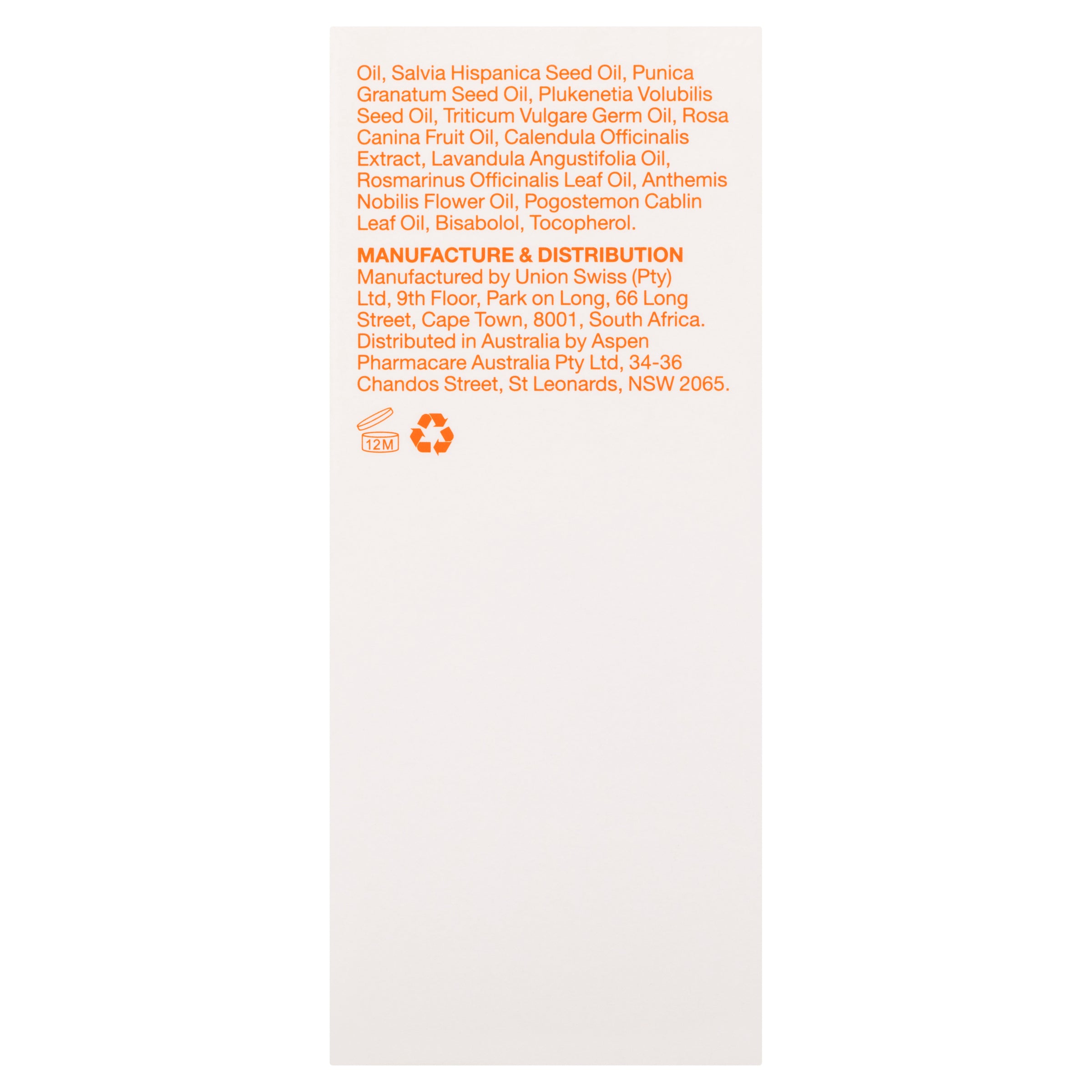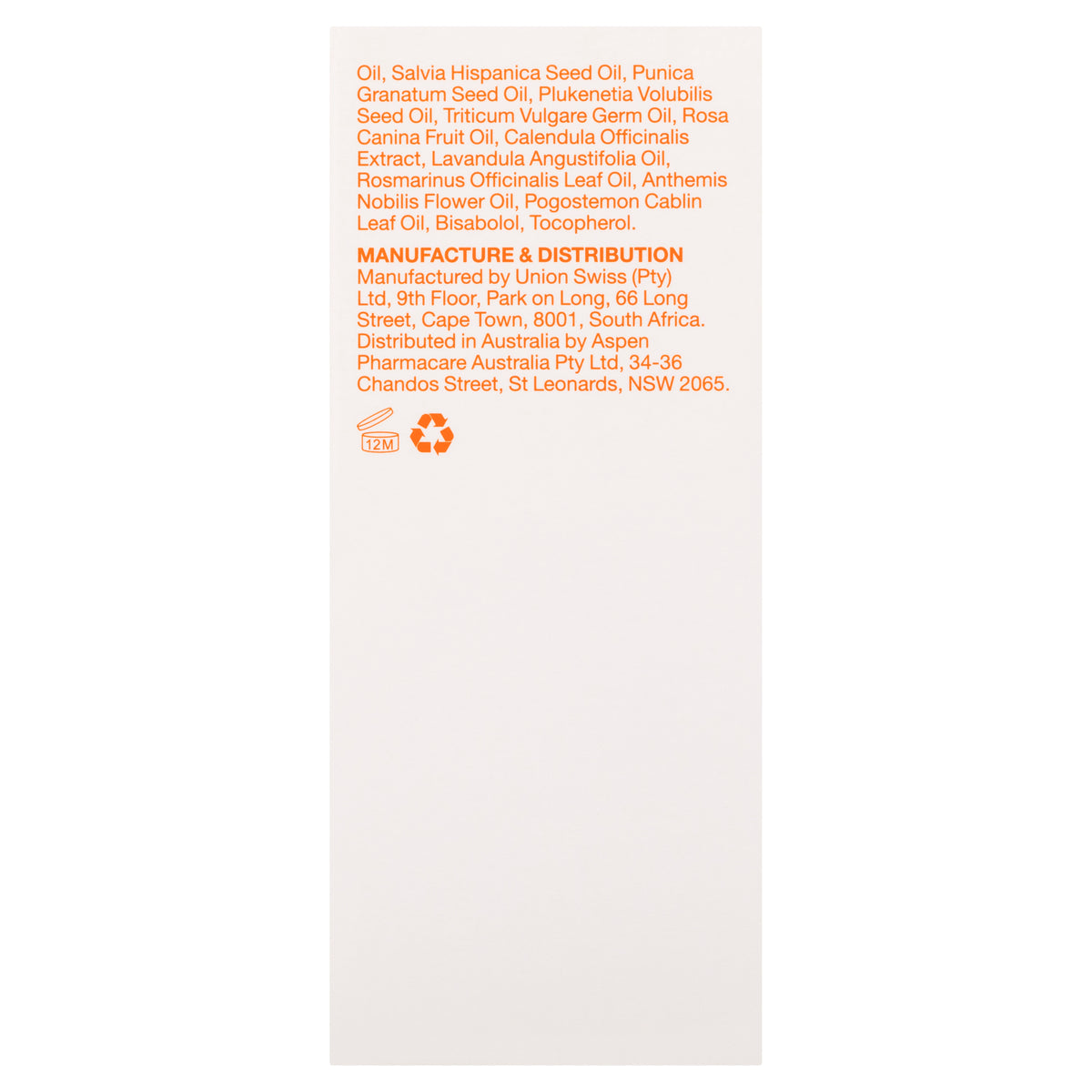 Glycine Soja Oil, Helianthus Annuus Seed Oil, Carthamus Tinctorius Seed Oil, Simmondsia Chinensis Seed Oil, Salvia Hispanica Seed Oil, Punica Granatum Seed Oil, Plukenetia Volubilis Seed Oil, Triticum Vulgare Germ Oil, Rosa Canina Fruit Oil, Calendula Officinalis Extract, Lavandula Angustifolia Oil, Rosmarinus Officinalis Leaf Oil, Anthemis Nobilis Flower Oil, Pogostemon Cablin Leaf Oil, Bisabolol, Tocopherol