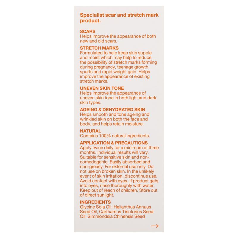 • Skincare Oil Natural helped improve the appearance of stretch marks in 97% of trialists after 8 weeks*.• Skincare Oil Natural helped improve the appearance of scars in 94% of trialists after 2 weeks**.