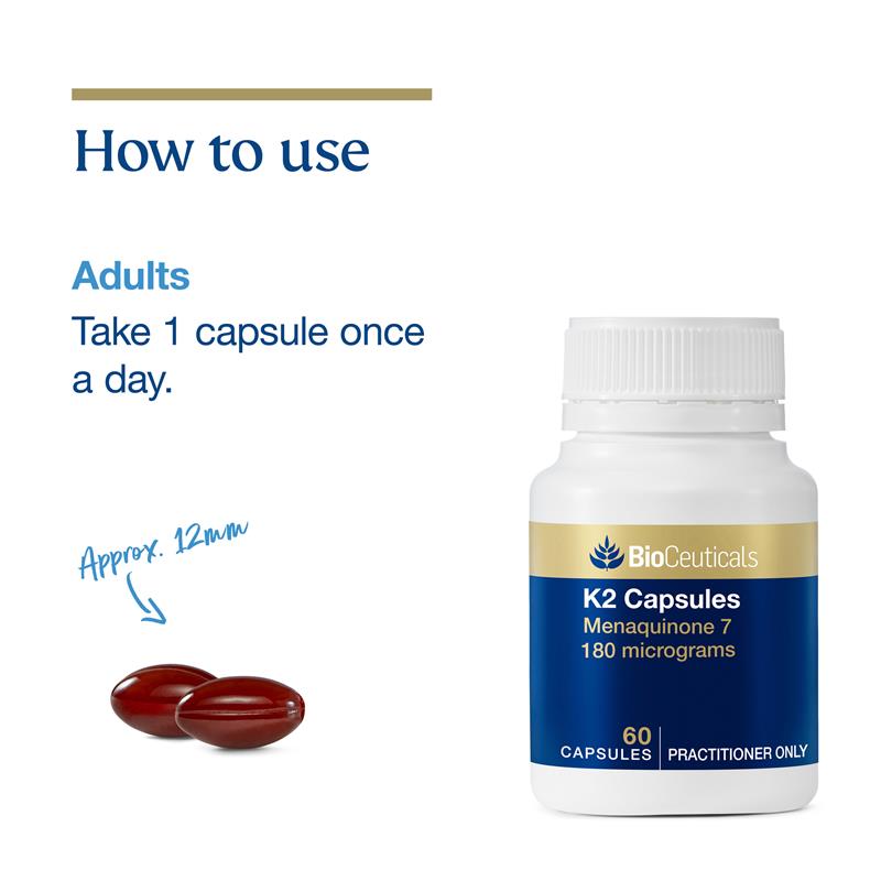 • BioCeuticals K2 capsules support vitamin K levels in the body.• Supports bone health