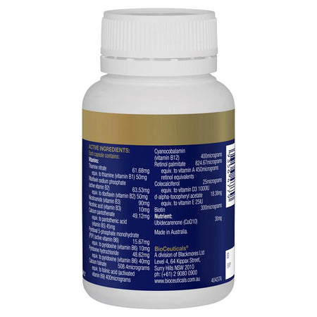 Bioavailable forms of B vitamins together with coenzyme Q10 help maintain energy levels.