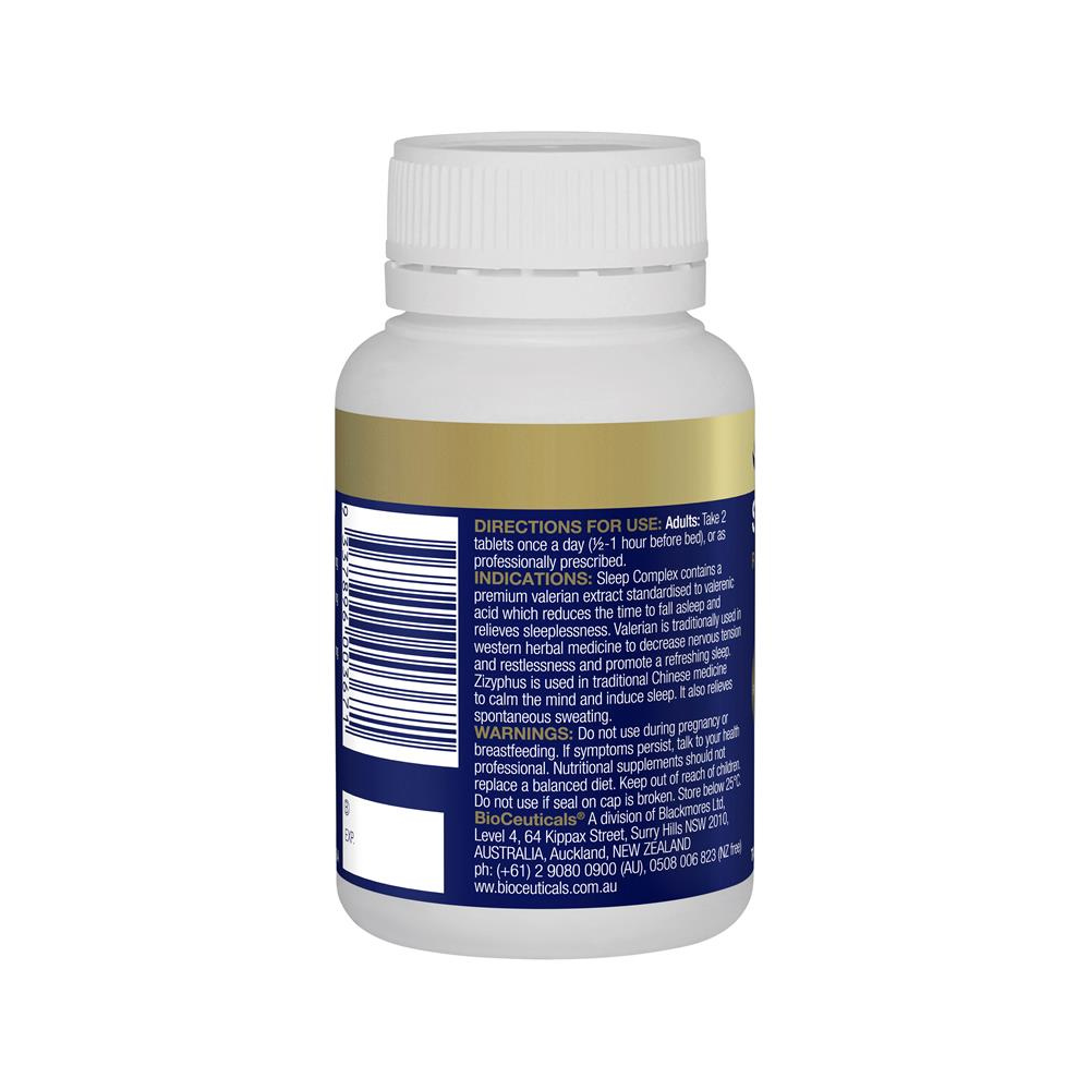 Say goodbye to sleepless nights with BioCeuticals Sleep Complex Tablets. This dietary supplement contains the herb valerian to enhance your sleep quality and reduce the time you need to fall asleep. Valerian is also traditionally used in Western herbal medicine to decrease nervous tension and restlessness. The other key ingredient is Zizyphus, a herb traditionally used in Chinese medicine to calm the mind, induce sleep and relieve spontaneous night sweating. Sleep Complex Tablets combine traditional ingredients from Eastern and Western medicine to help give you a good night's sleep. Adults: Take two tablets once a day 30 minutes to an hour before bedtime.Suitable For: Adults only or as professionally prescribed
