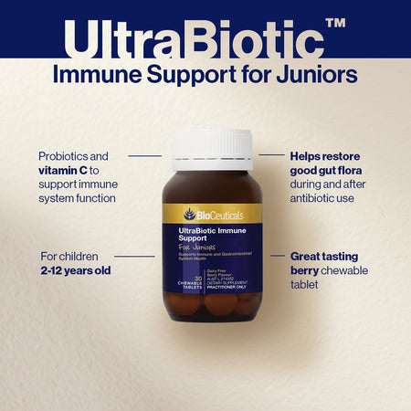 Bioceuticals Ultrabiotic Immune Support for Juniors 30 Chewable Tablets