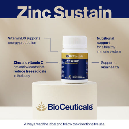 Zinc Sustain features 30mg of zinc in an amino acid chelate form and cofactors to assist with its absorption. Zinc has many physiological roles and is involved in the major metabolic pathways of the body.