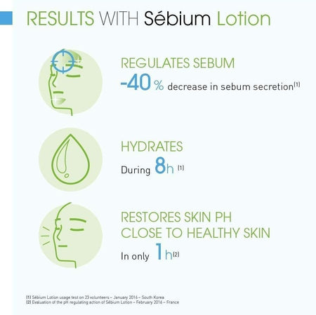 Sèbium Lotion rebalances the skin in a lasting way. The exclusive FLUIDACTIV™ patent complex biologically regulates sebum quality and quantity, keeping pores from becoming clogged and limiting the formation of blemishes. Whilst other active ingredients provide hydration and PH balancing effects.
