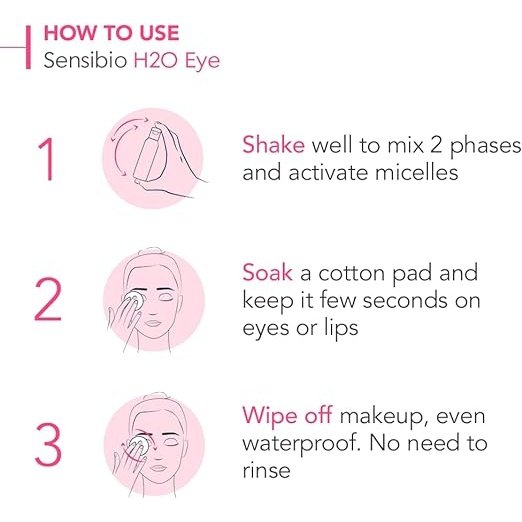 Soak a cotton pad with Sensibio H2O Eye and hold on to the eye/lip area for a few seconds before wiping makeup away. Remove makeup from the remainder of the face using Sensibio H2O and/or Sensibio Gel Moussant.