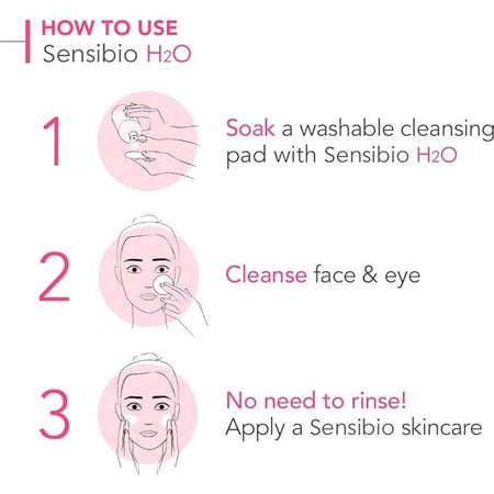 Soak a cotton pad with Sensibio H2O and gently wipe over the face to cleanse. No rinsing is required. Can be used on waterproof mascara and eyelash extensions.