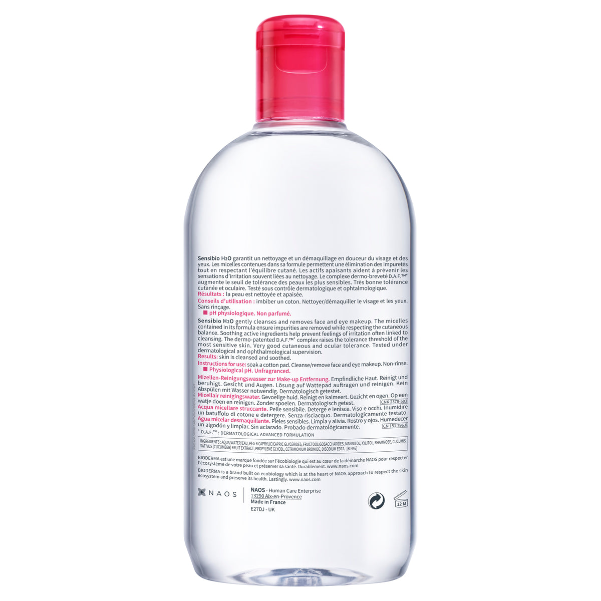 Sensibio H2O is perfectly compatible with the skin - its fatty acid esters, the constituent elements of micelles, are similar to the phospholipids of the skin cell membranes and naturally help rebuild the skin's hydrolipidic film.