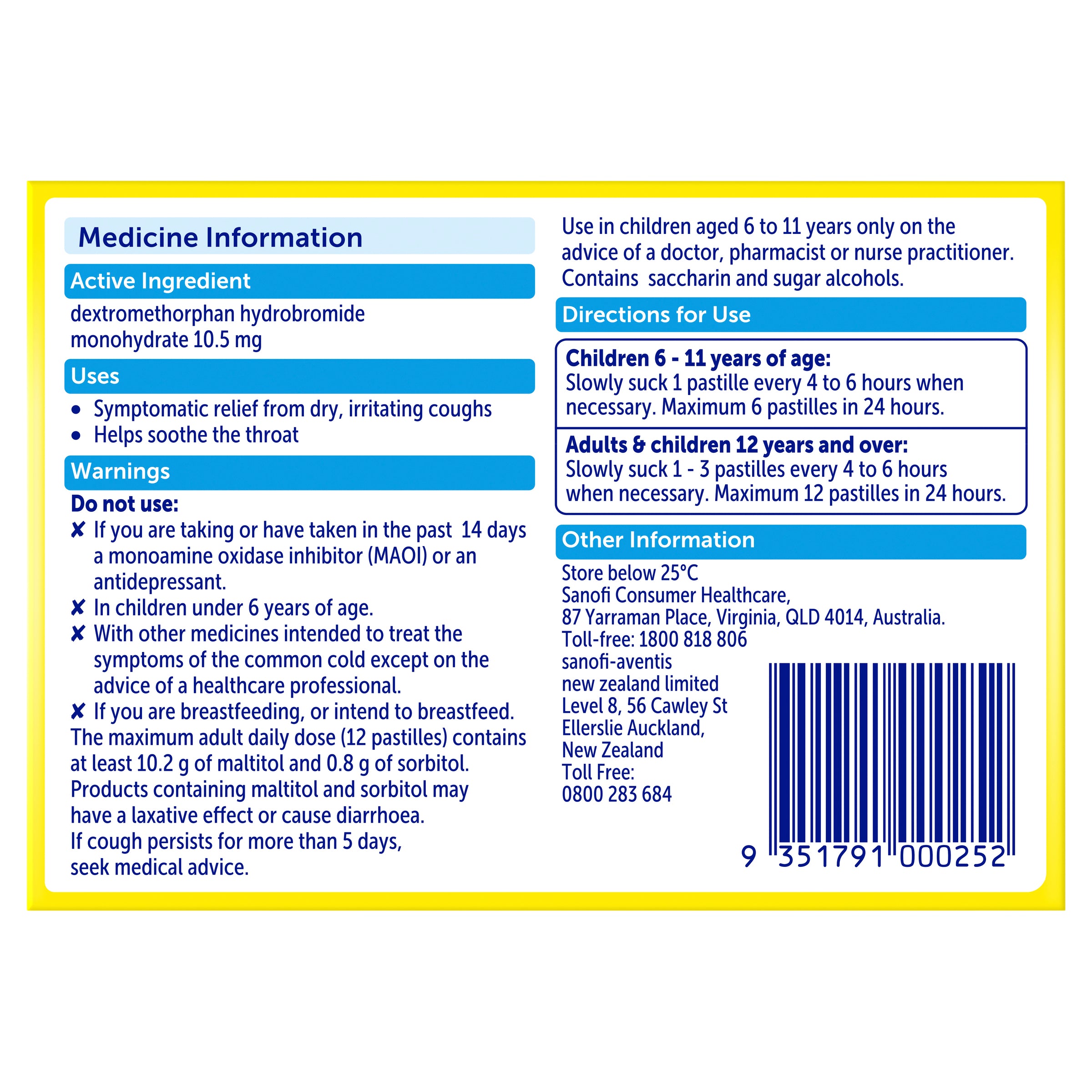 Each 5ml contains dextromethorphan hydrobromide 10.5mg