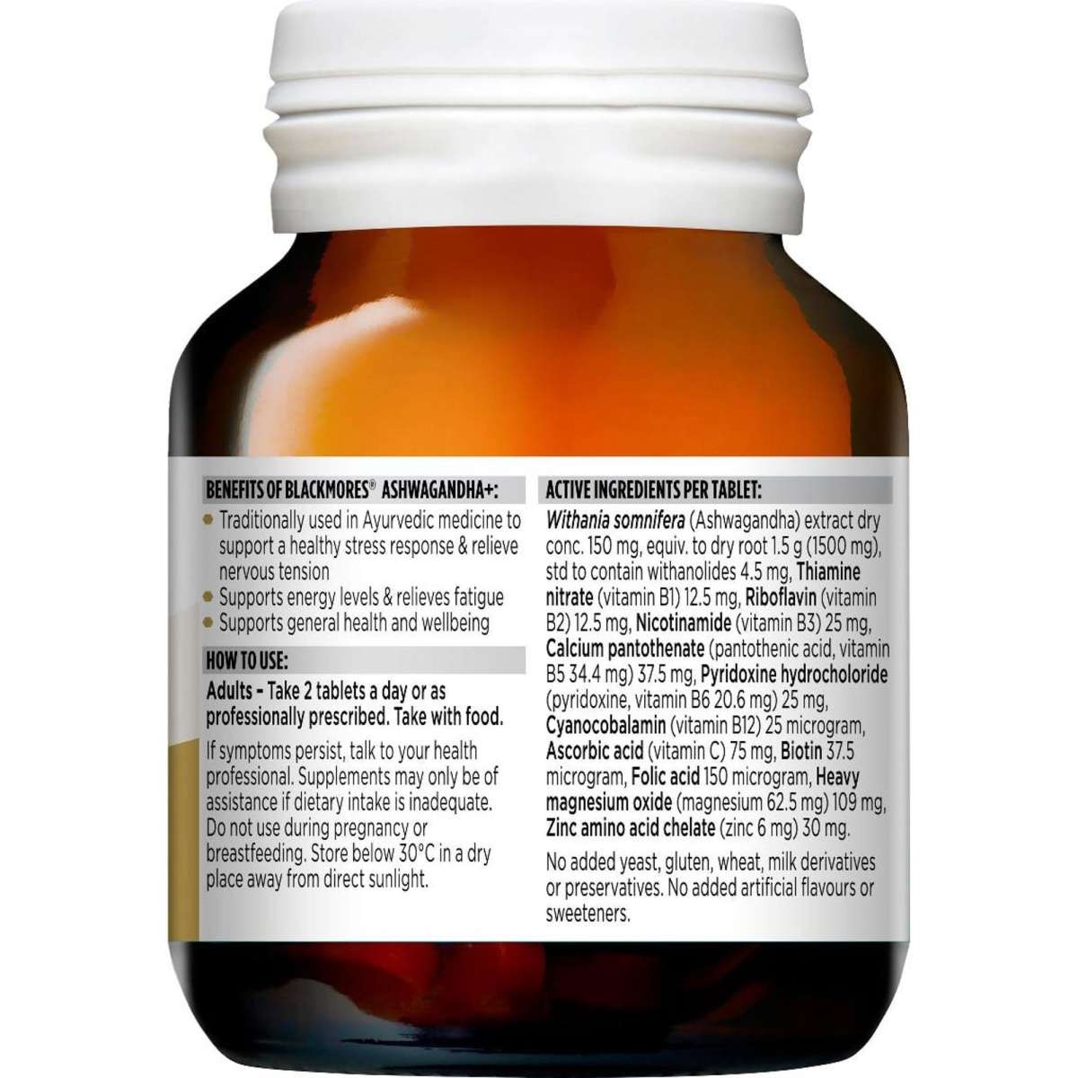 BLACKMORES ASHWAGANDHA+ is traditionally used in Ayurvedic medicine to relieve symptoms of stress & help the body to adapt to stress.