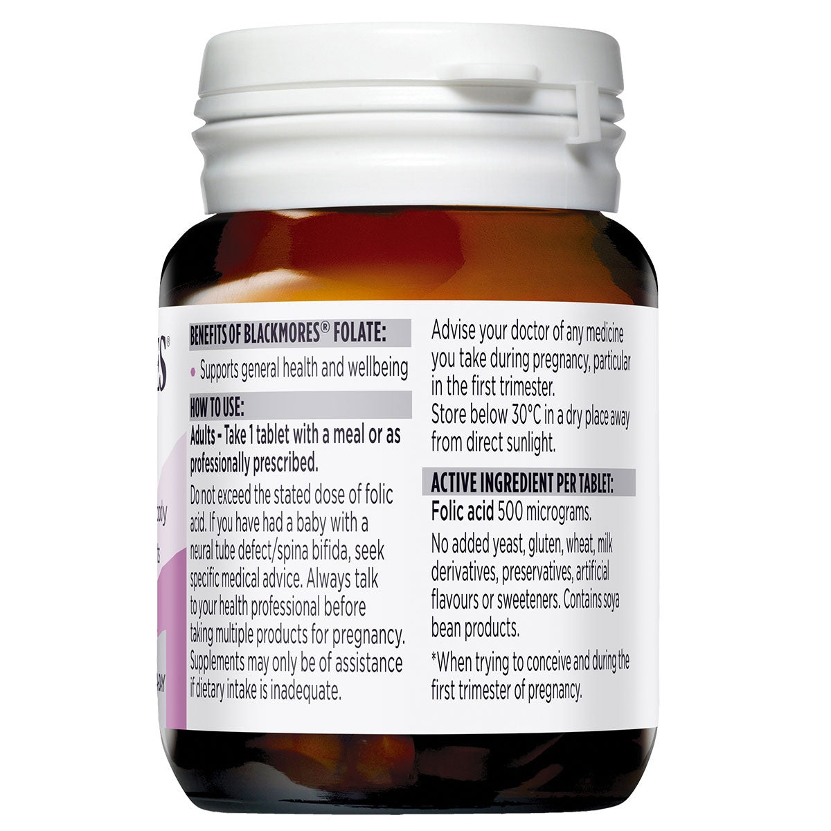 Blackmores Folate is a convenient dose of folic acid developed for women planning pregnancy who may not get adequate levels of folic acid in their diet.