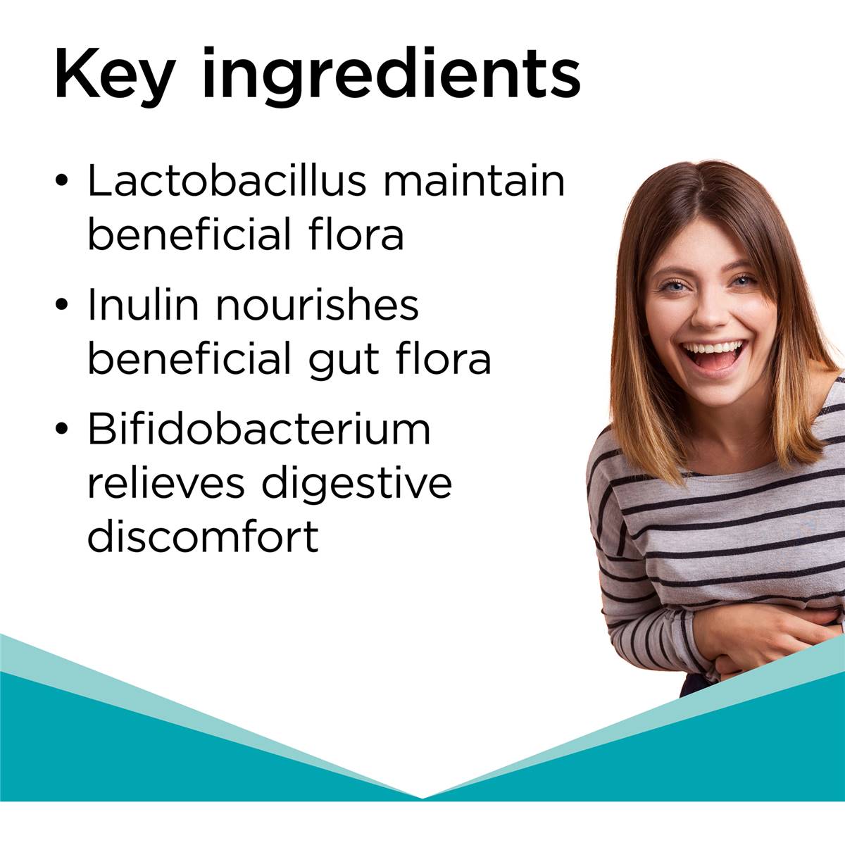 Blackmores Probiotic+ Daily Health is formulated based on scientific evidence. This dual-action formula contains five clinically trialled probiotic strains providing 30 billion good bacteria, plus a prebiotic.