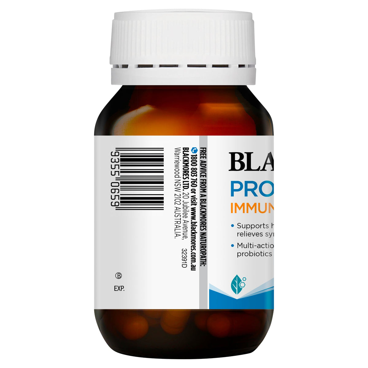 Formulated based on science. This potent, multi-action formula contains five scientific probiotic strains providing 20 billion good bacteria, plus a prebiotic, vitamin C and zinc helping support healthy immune system function and general wellbeing.There's no need to refrigerate Blackmores Probiotics+ Immune Defence due to a specialised formulation process and packaging technology which helps prevent moisture from harming the good bacteria, helping keep them alive.
